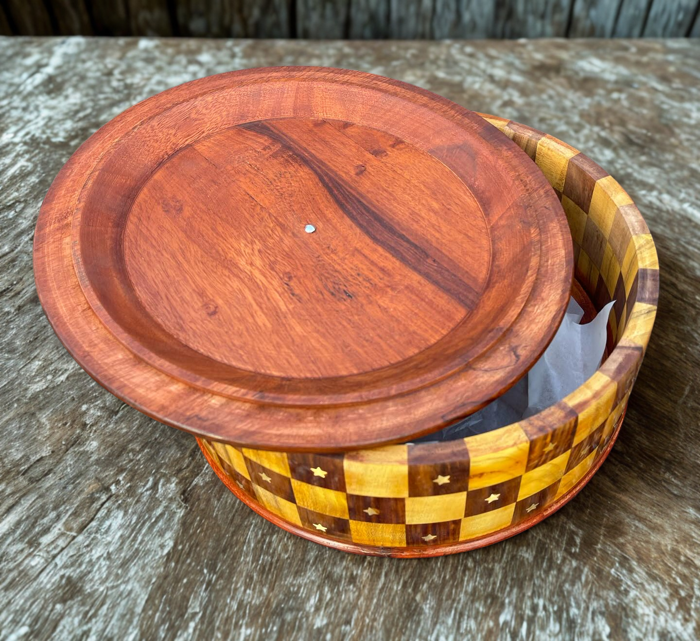 Experience the warmth of tradition and craftsmanship with this handmade wooden hotpot by Decora Crafts. Expertly crafted from 100% solid Sheesham wood, it features elegant brass inlay engravings on the lid and sides — a true fusion of art and utility.
